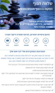 פרטי קשר, כפתור לוואטסאפ, קישורים לרשתות, ניווט בקליק, המלצות מלקוחות, שעות פעילות ועוד.